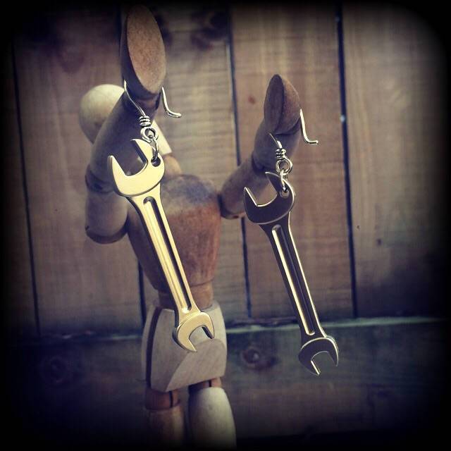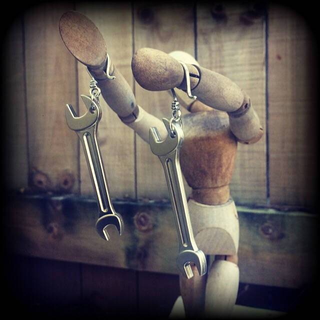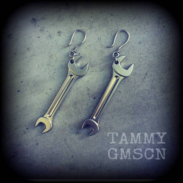 These quirky novelty light weight 'Monkey Wrench' ear hangers measure just on 9 cms and weighing 10 grams a piece, these ear hangers feature a small antique silver shephards hook, suitable for stretched lobes when worn with silicone earlets 3mm and larger.