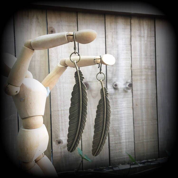 Featuring large Antique Bronze Vintage feathers, these Artemis 'Bronze Feather' earrings measure just under 15cms and look great!